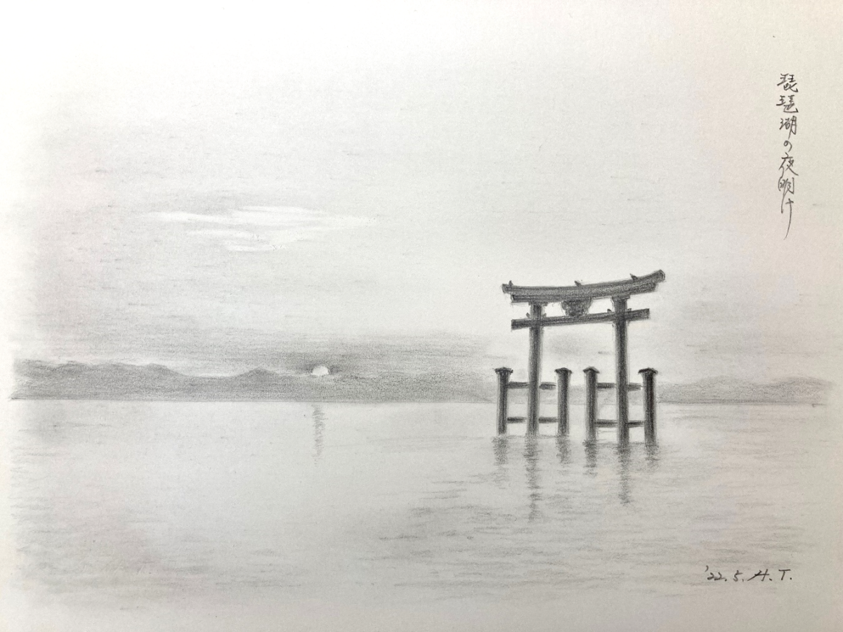 真夜中に琵琶湖畔で座禅を組んでいた一休。