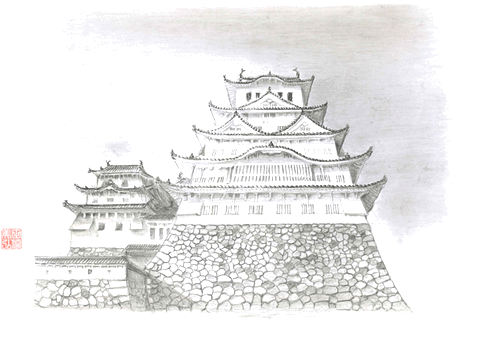 姫路城の屋根瓦は白漆喰で”かまぼこ状”にして固めてあり、