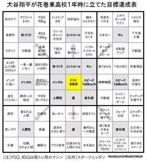 野球部の監督から教わったという大谷選手のチャートは、